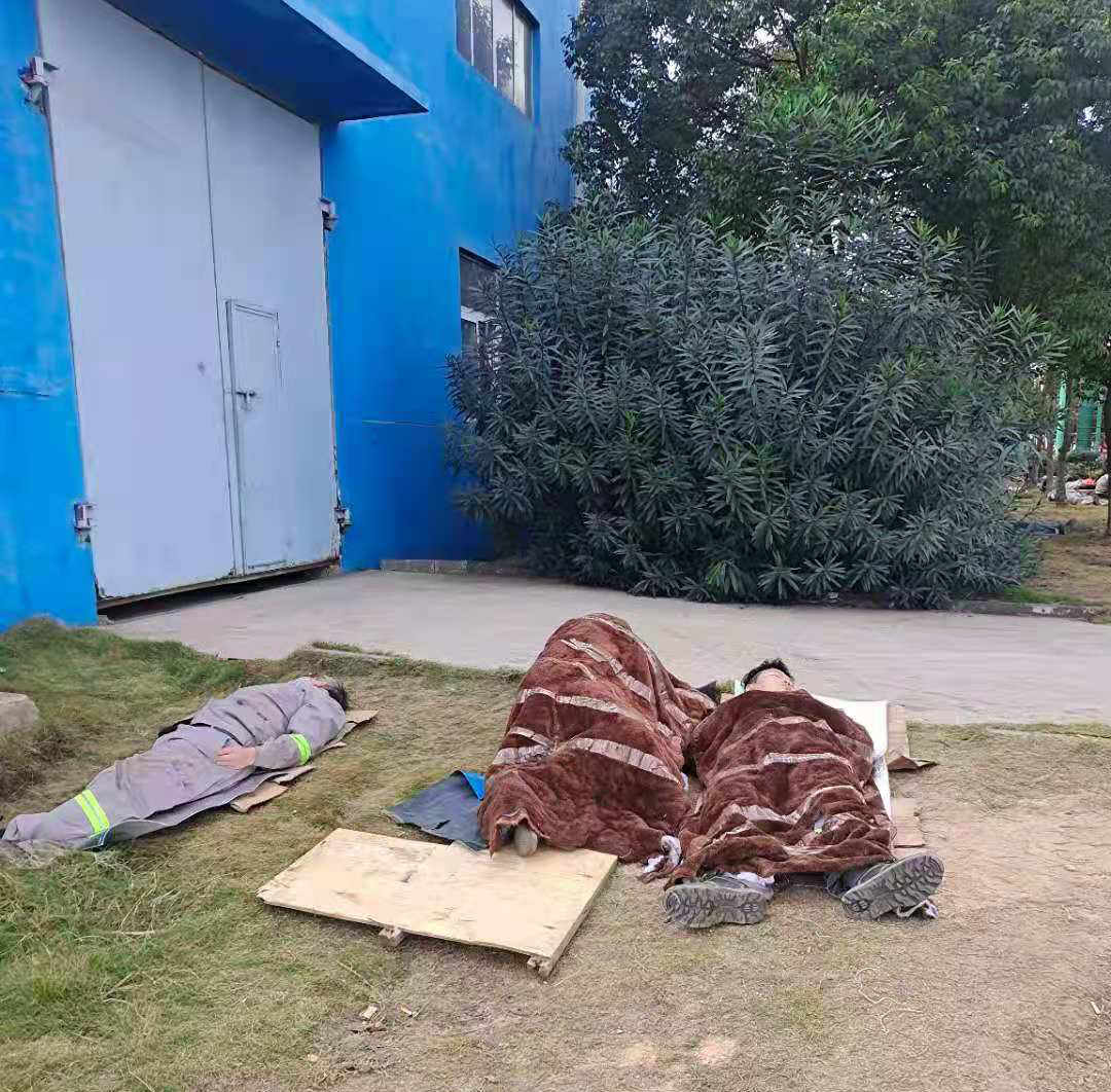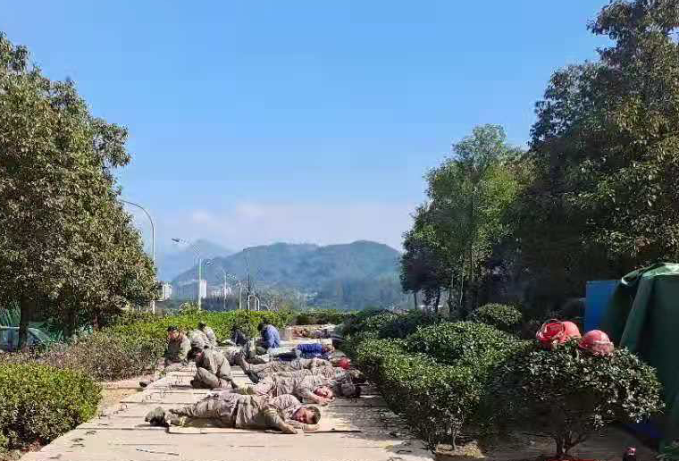 累了困了,露天席地抓緊睡