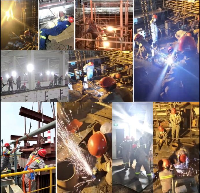 檢修現(xiàn)場(chǎng),一張張沾滿油污的笑臉道出了發(fā)展的喜悅,一雙雙粗壯的雙手展示著一段段創(chuàng)業(yè)的歷程,一道道電焊弧光演奏出降本的音符,飛濺的焊花噴發(fā)著維修人奮進(jìn)的熱情。向奮斗在一線平凡而又偉大的維修人致敬!